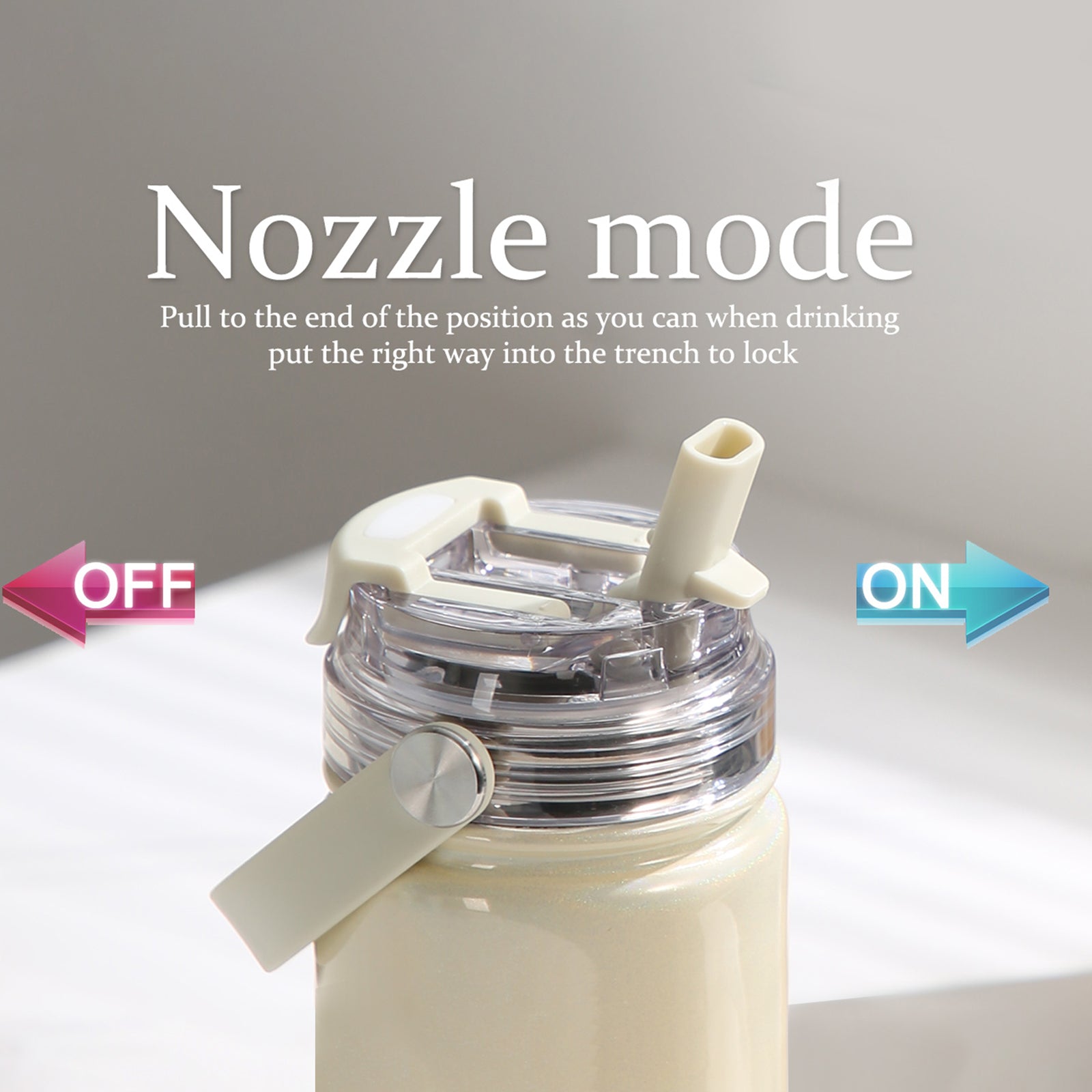 Our water bottle's unique 2-in-1 lid allows you to drink straight from the drinking bottle and use the straw lid to drink cold drinks. When you drink from the flip lid, you don't have to worry about the flip lid falling off and hitting your nose. We took the two most common drinking methods and put them on the lid.
