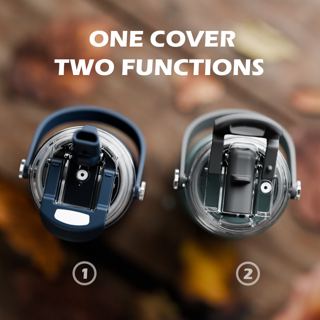 Our water bottle's unique 2-in-1 lid allows you to drink straight from the drinking bottle and use the straw lid to drink cold drinks. When you drink from the flip lid, you don't have to worry about the flip lid falling off and hitting your nose. We took the two most common drinking methods and put them on the lid.
