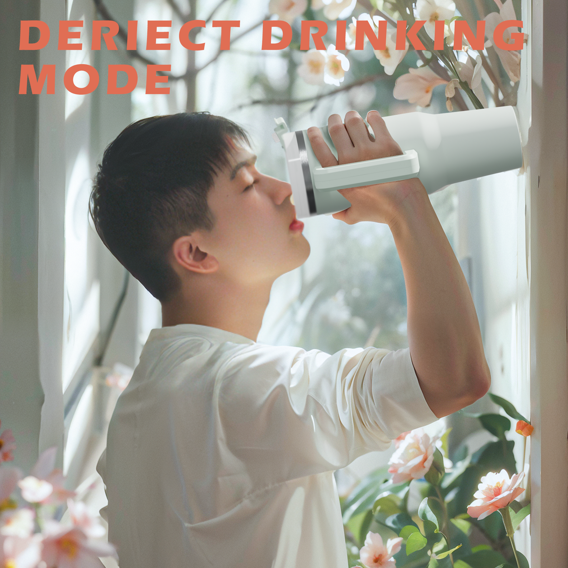 Our water bottle's unique 2-in-1 lid allows you to drink straight from the drinking bottle and use the straw lid to drink cold drinks. When you drink from the flip lid, you don't have to worry about the flip lid falling off and hitting your nose. We took the two most common drinking methods and put them on the lid.
